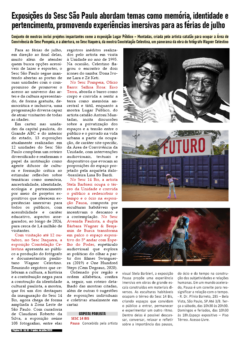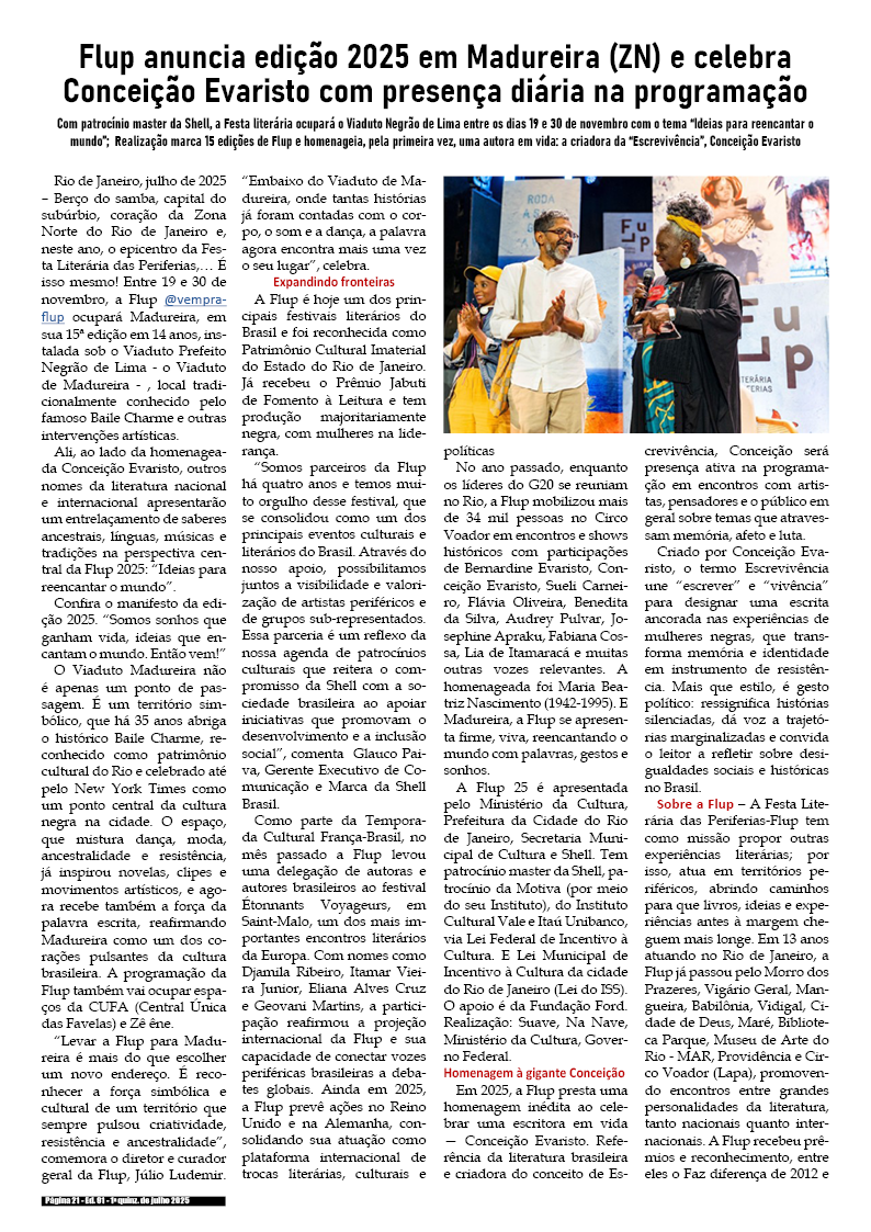1a quinzena de julho de 2025 – Divulgação de literatura, artes e cultura em geral.