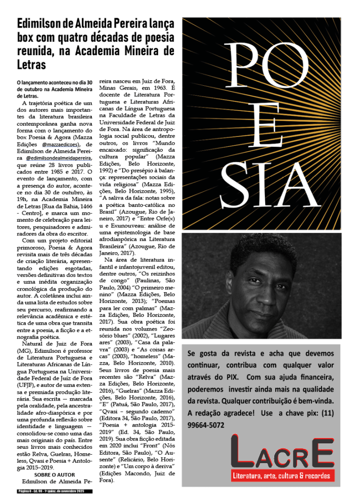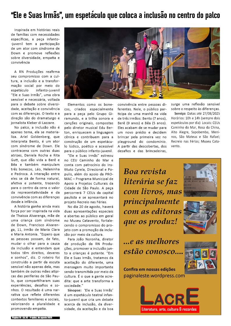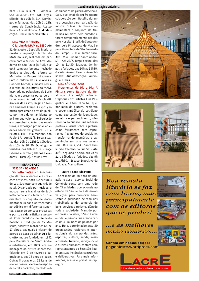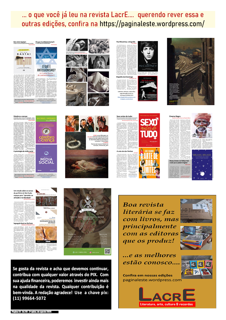 1a quinzena de agosto de 2025 – Divulgação de literatura, artes, cultura & records