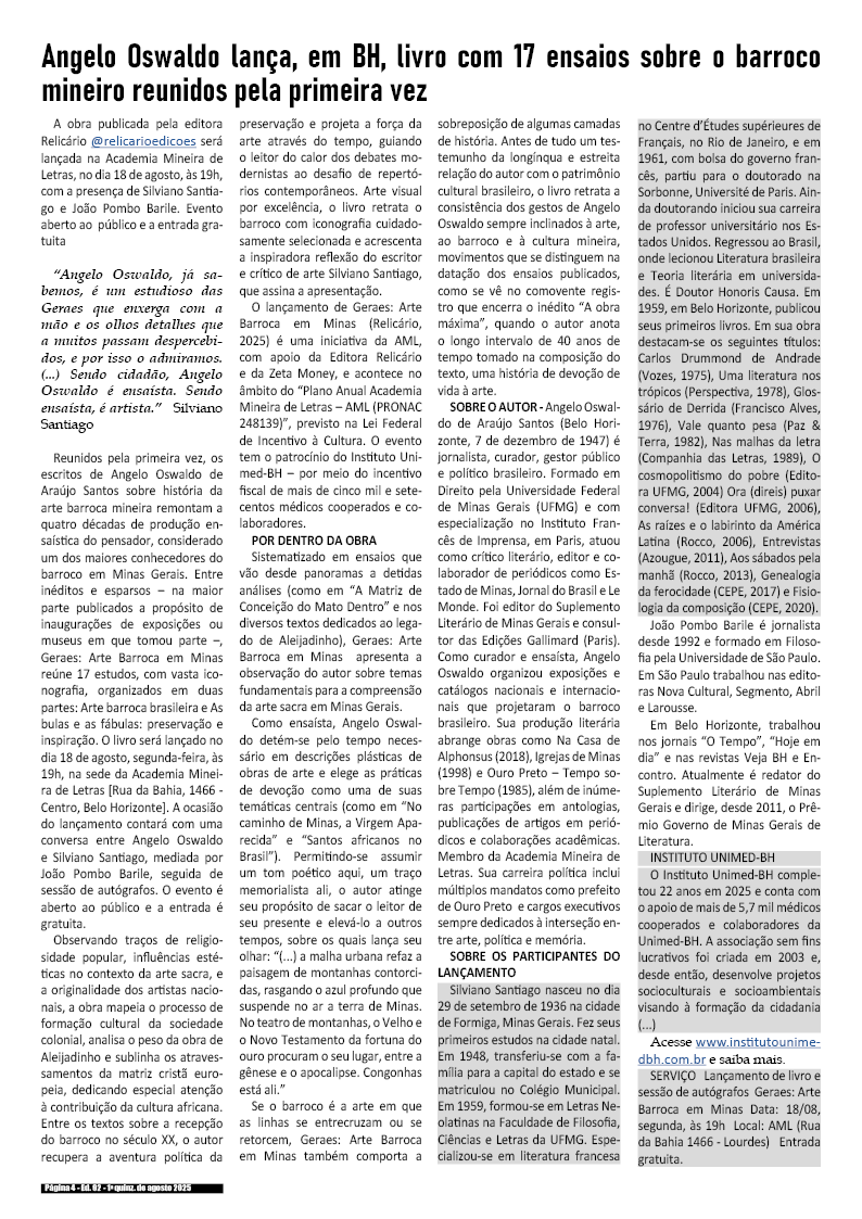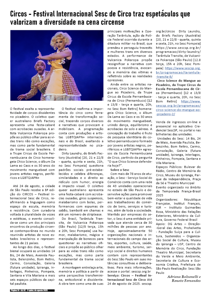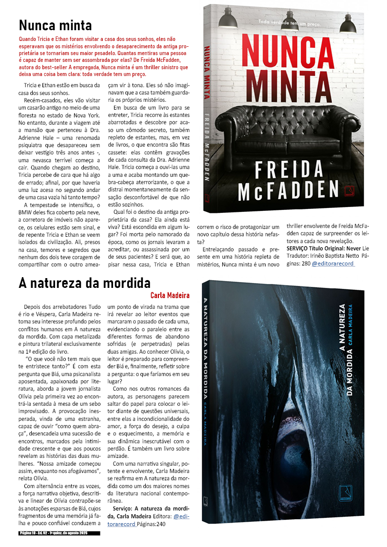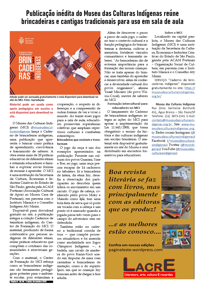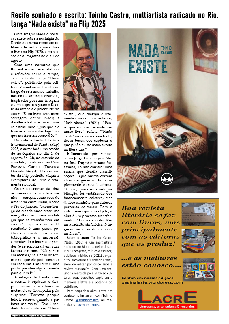 1a quinzena de agosto de 2025 – Divulgação de literatura, artes, cultura & records