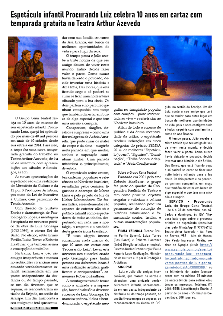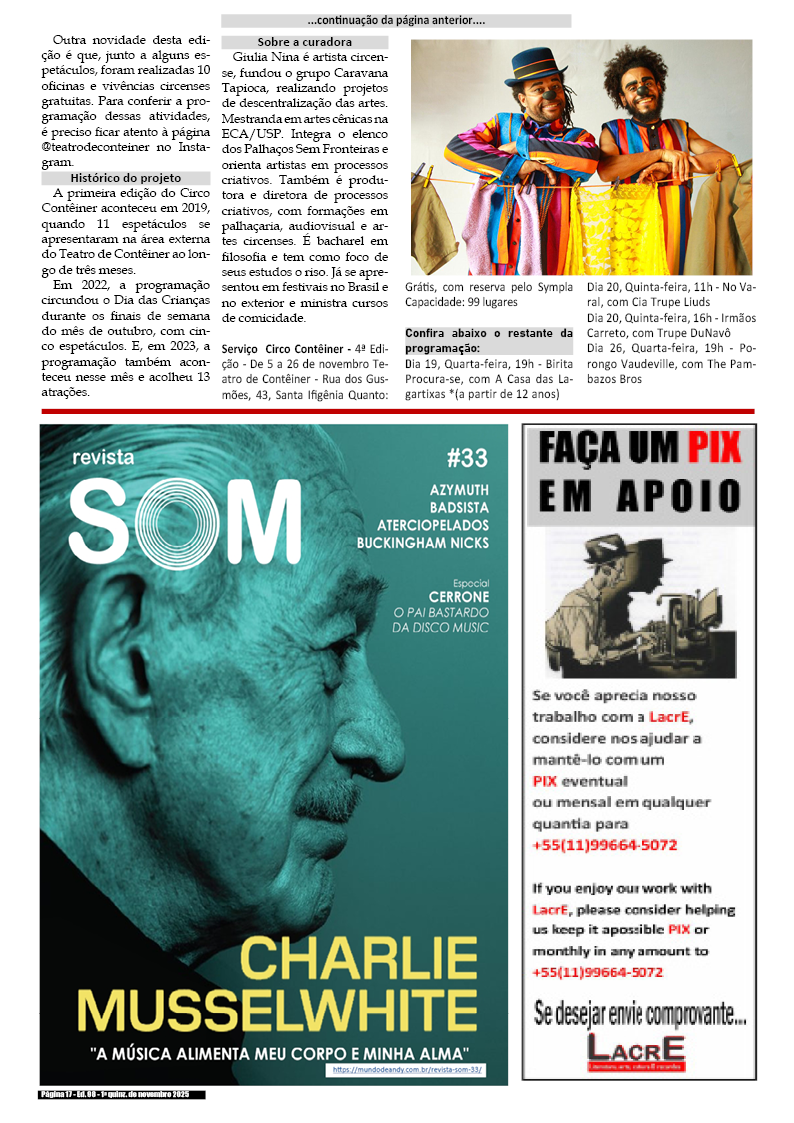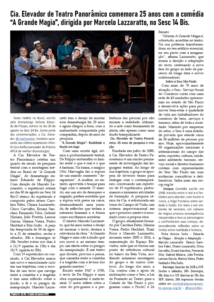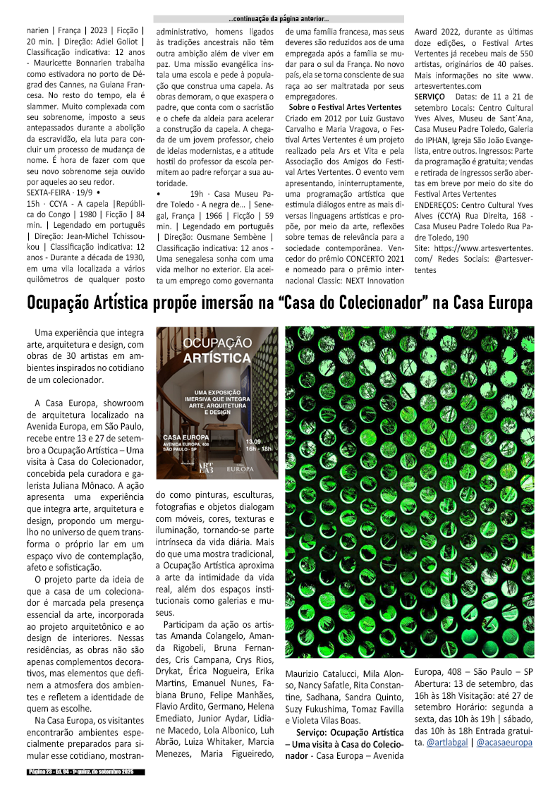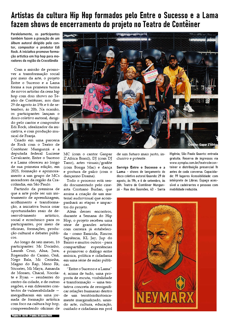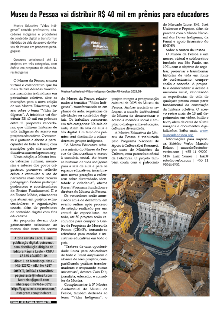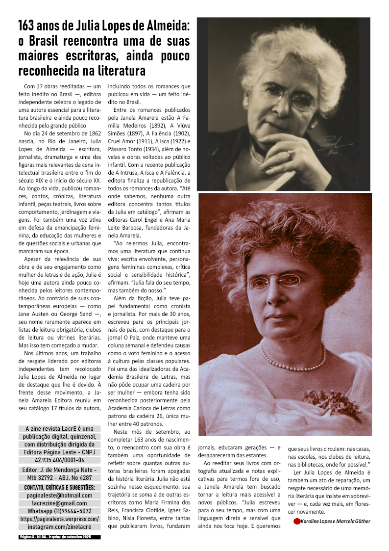 Edição da 2a quinzena de Agosto de 2025 – divulgação de literatura, artes, cultura em records em geral.