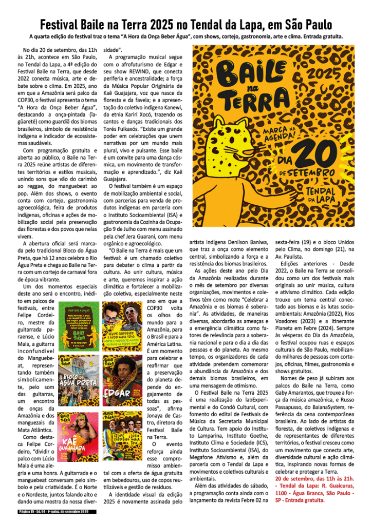 1a quinzena de setembro de 2025 – Divulgação de literatura, artes, cultura e recordes em geral