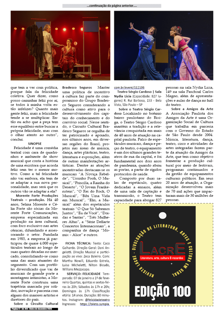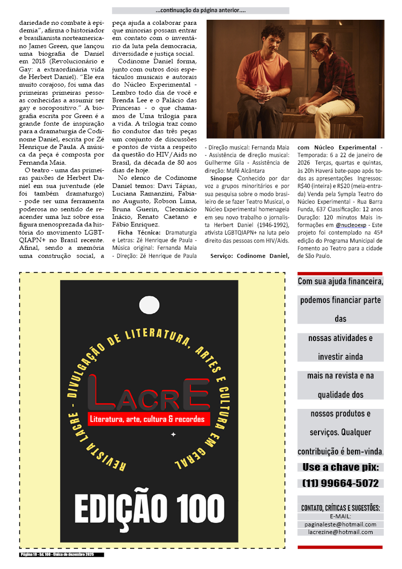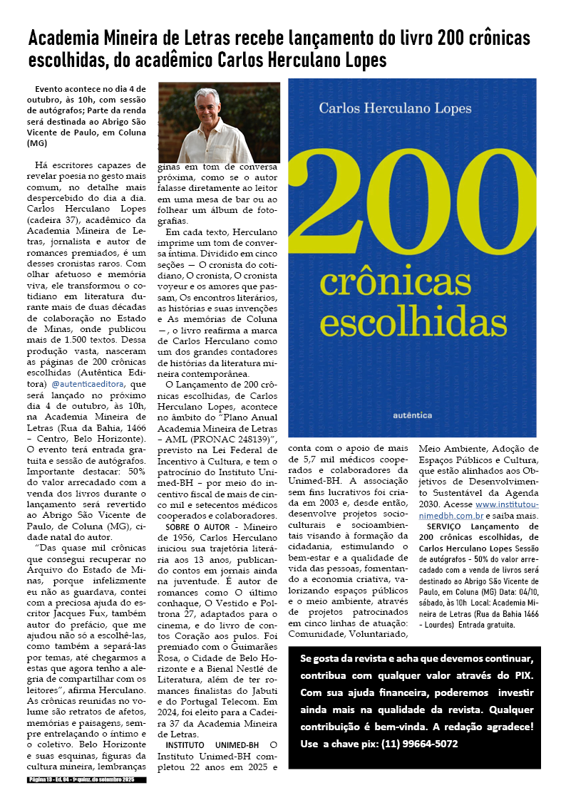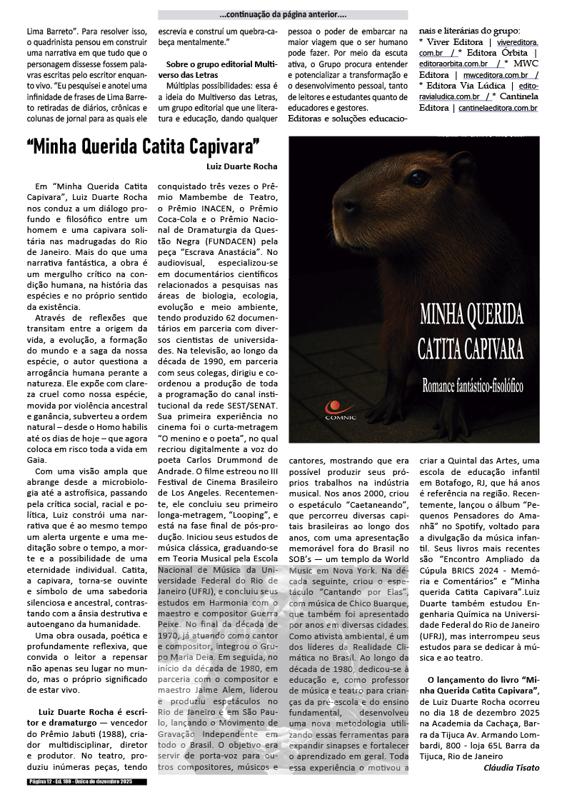 100a edição e única de dezembro de 2025 – Divulgação de literatura, artes e cultura em geral.