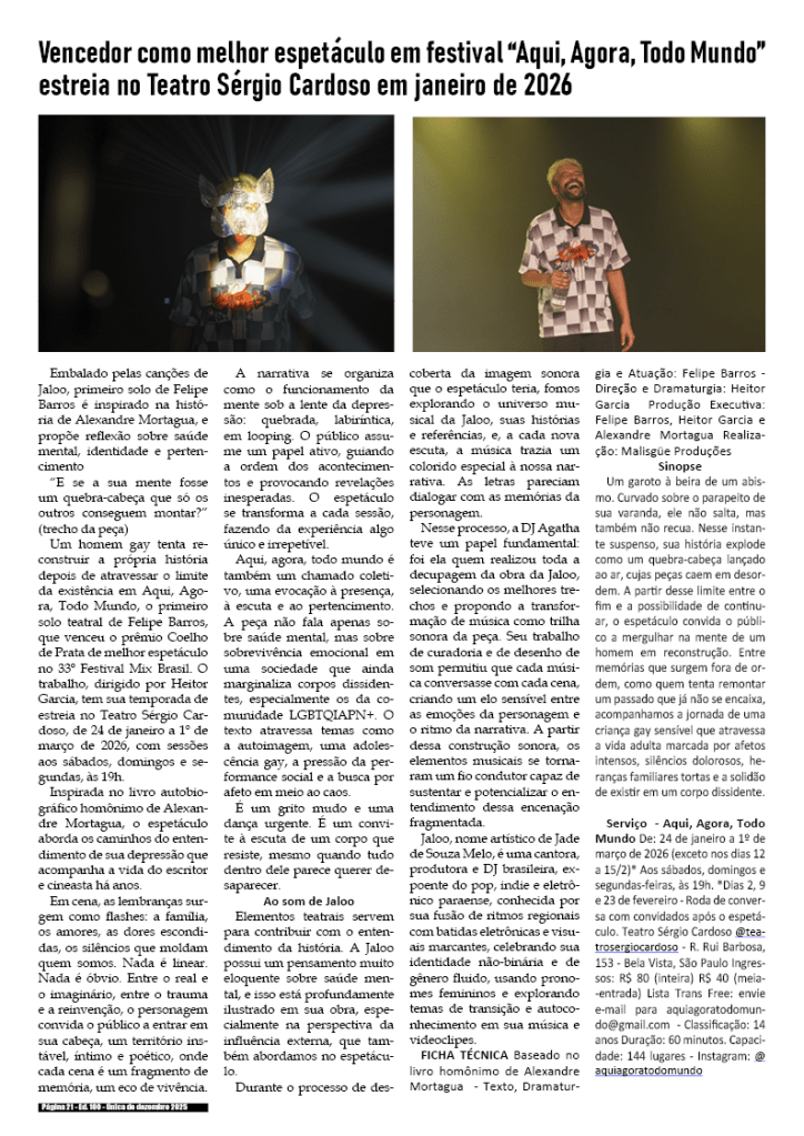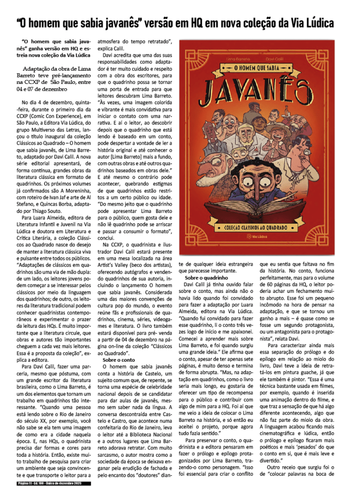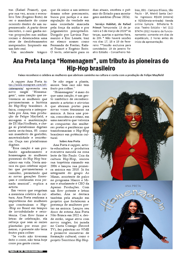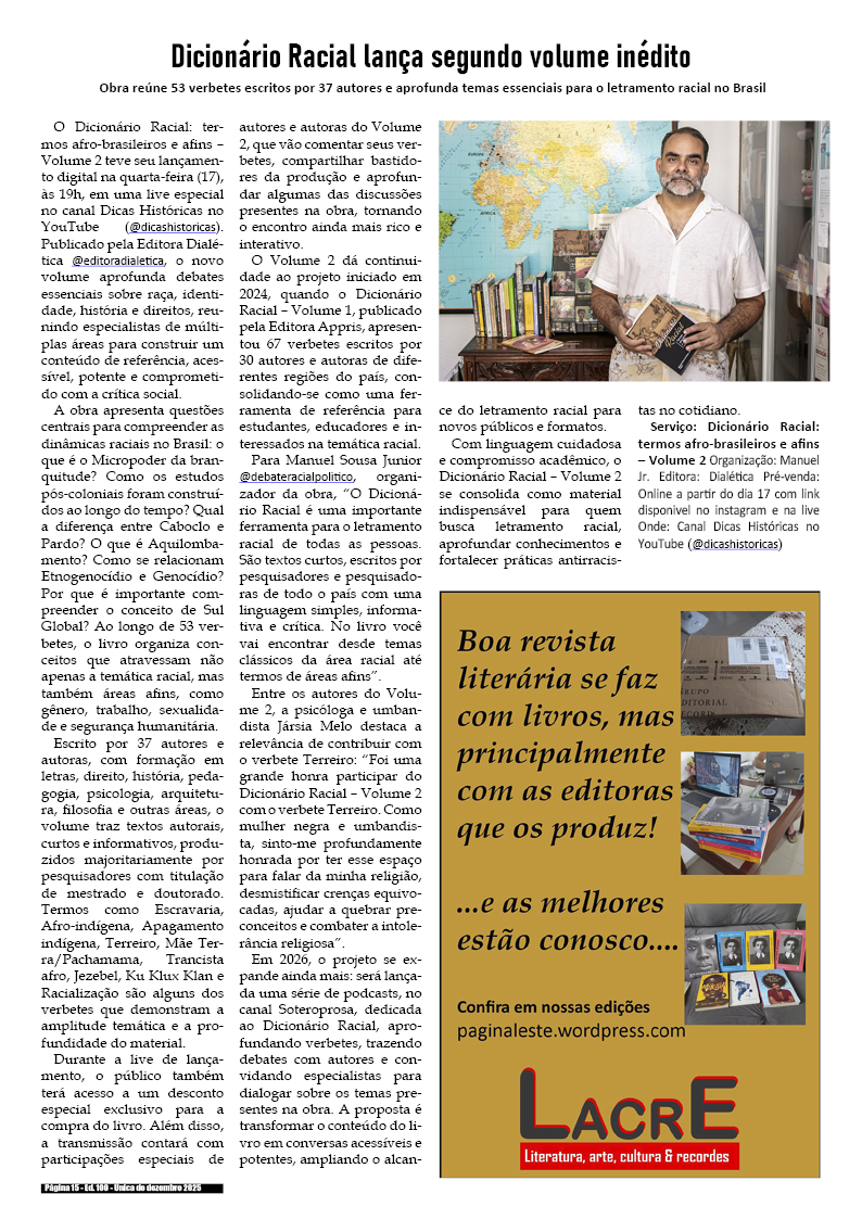 100a edição e única de dezembro de 2025 – Divulgação de literatura, artes e cultura em geral.
