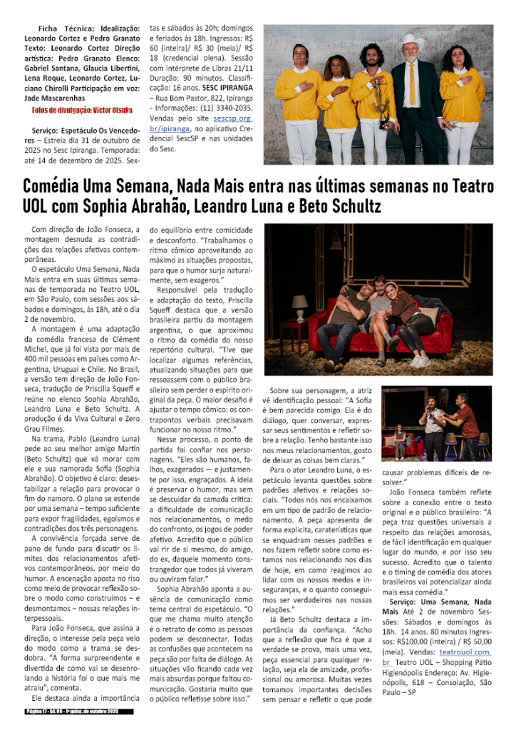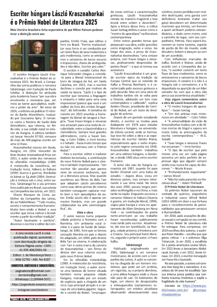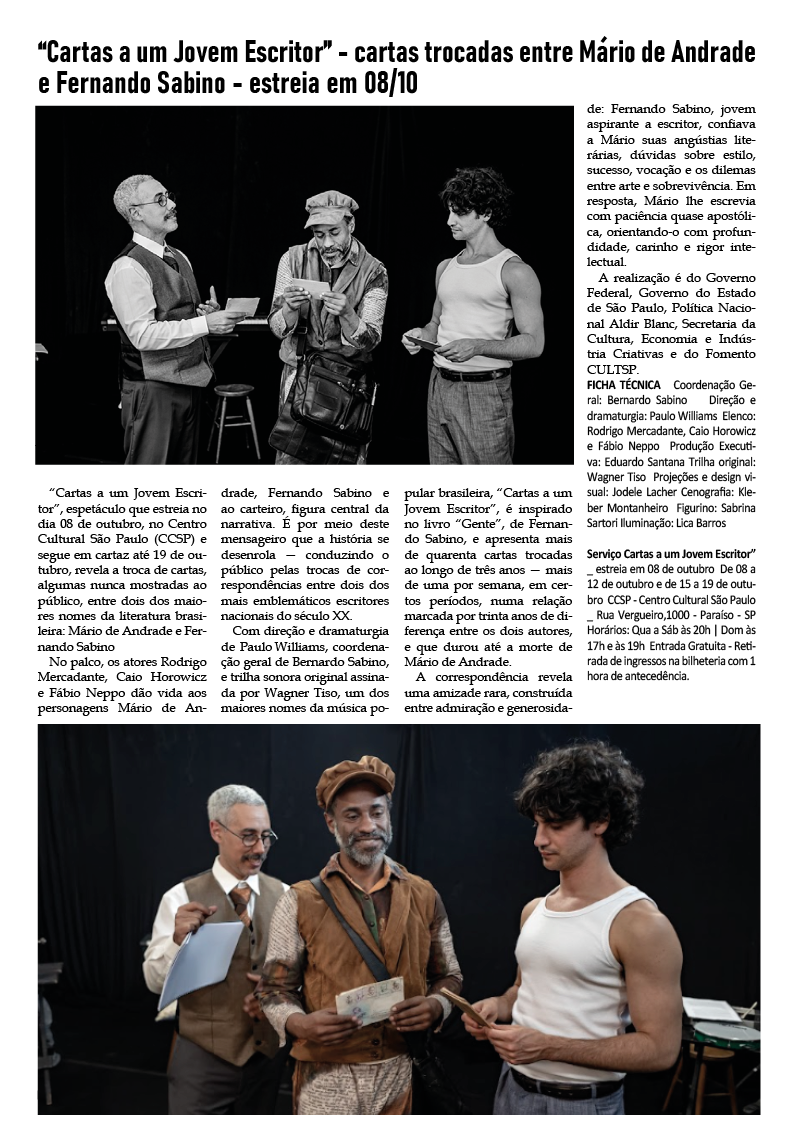 1a quinzena de outubro de 2025 – Divulgação de literatura, artes e cultura em geral