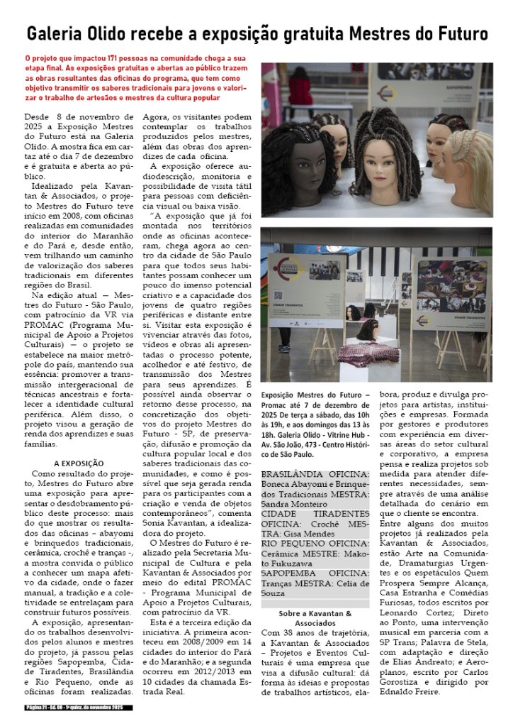 1a quinzena de novembro de 2025 – Divulgação de literatura, artes e cultura em geral