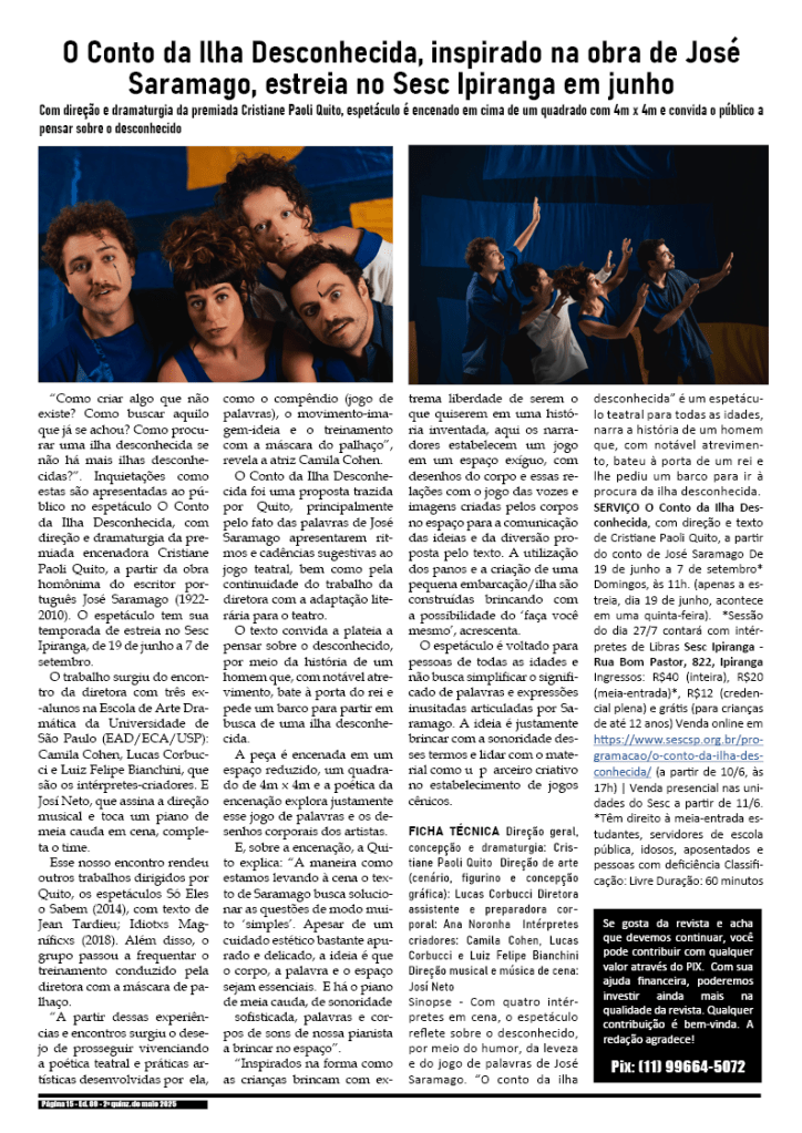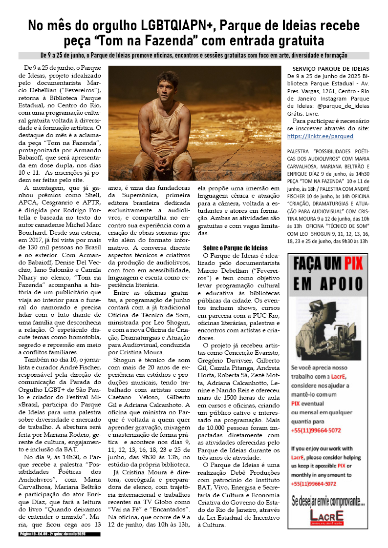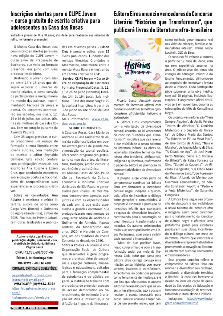Essa quinzena não teremos edição alguma em função de uma micro férias. Voltamos ao final de julho. Grato pela compreensão!