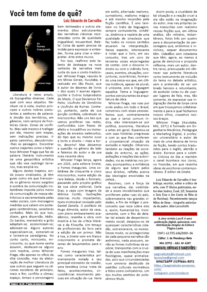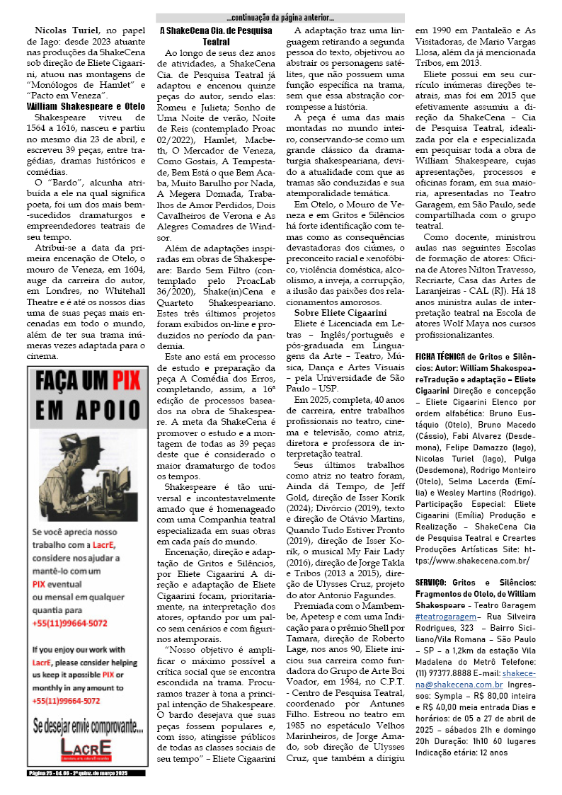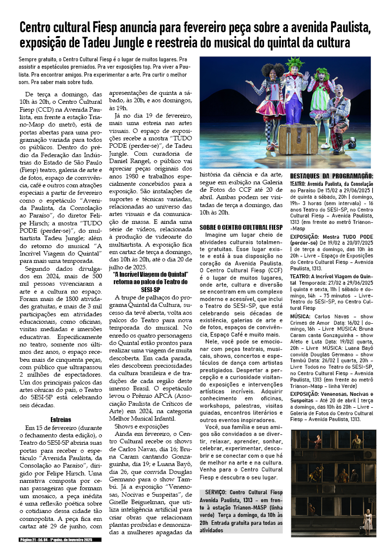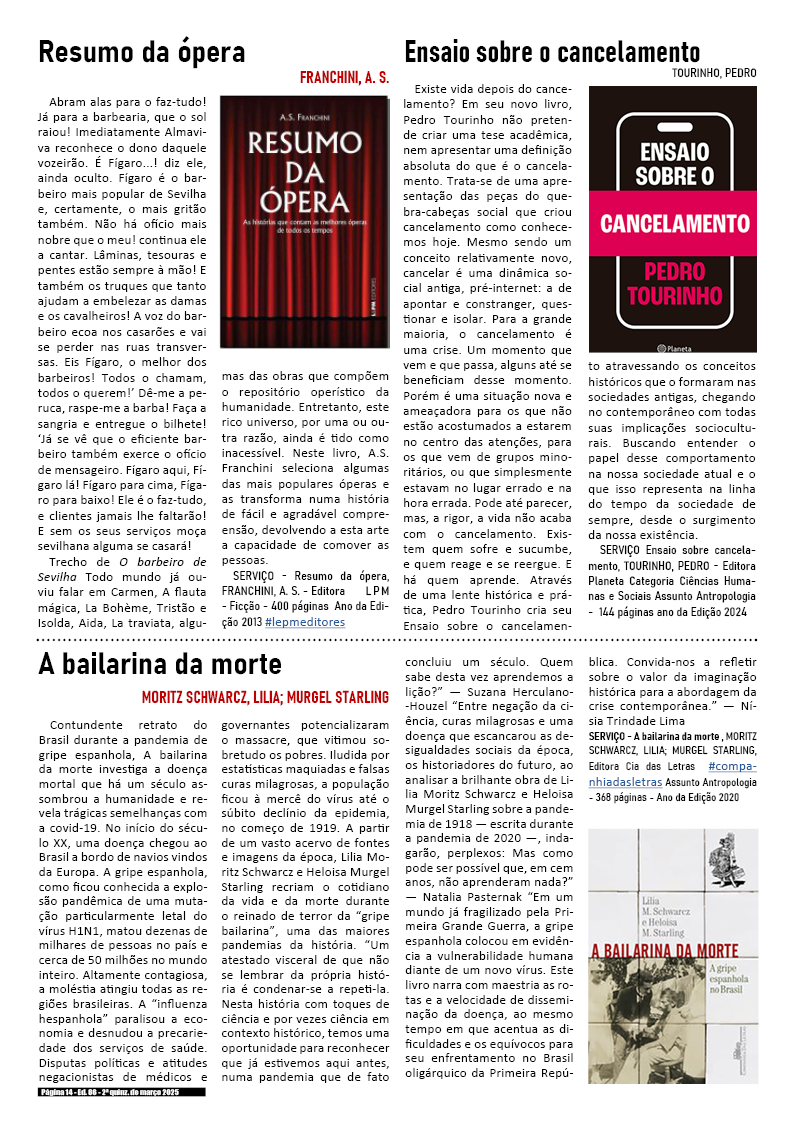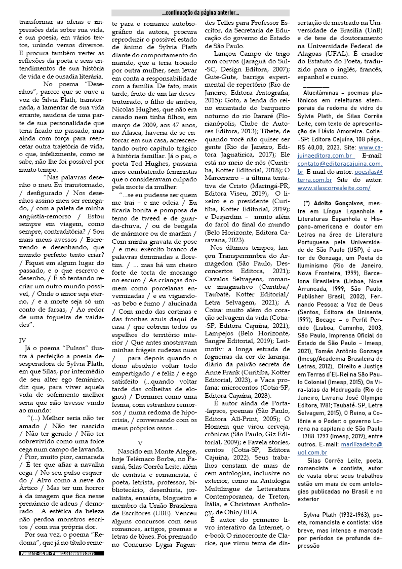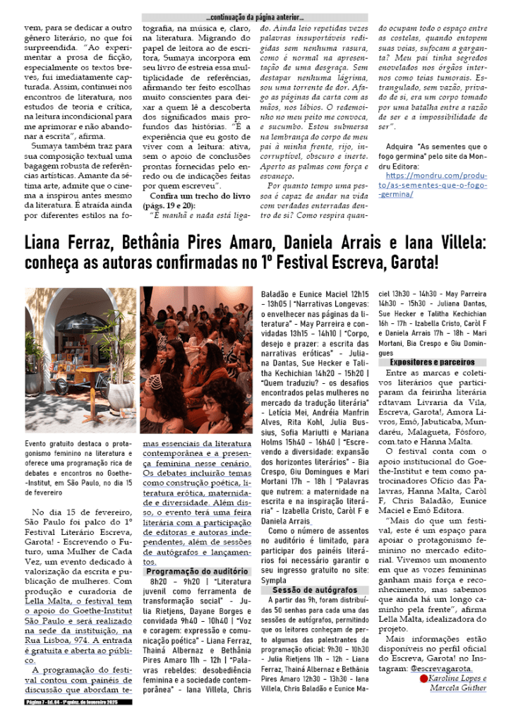 Edição da 1a quinz. fevereiro de 2025 – divulgação de literatura, artes e cultura em geral.