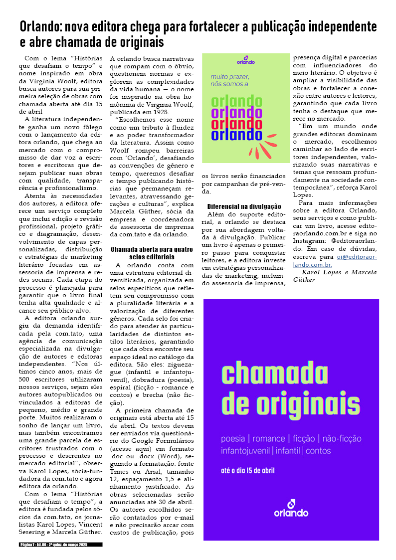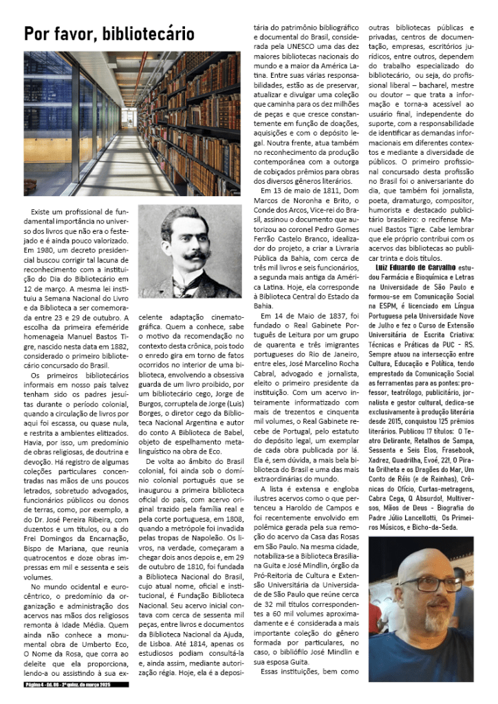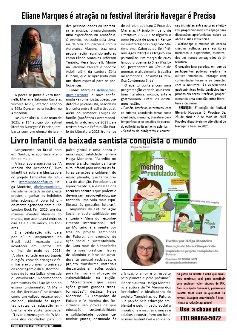 Edição da 2a quinzena de março de 2025 – Divulgação de literatura, artes e cultura em geral.