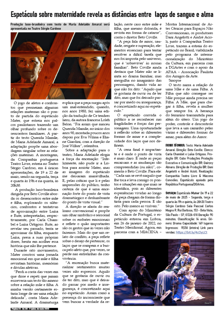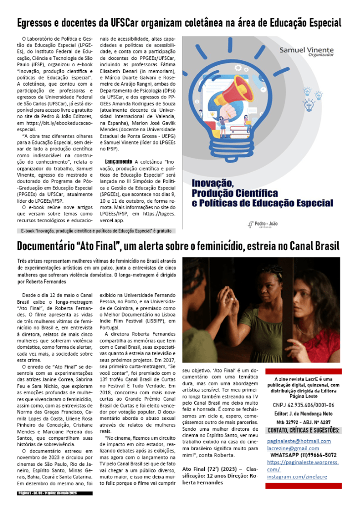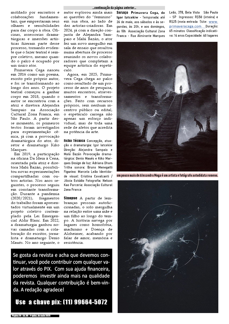 Primeira quinzena de maio de 2025 – divulgação de literatura, artes e cultural em geral.